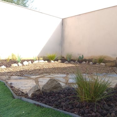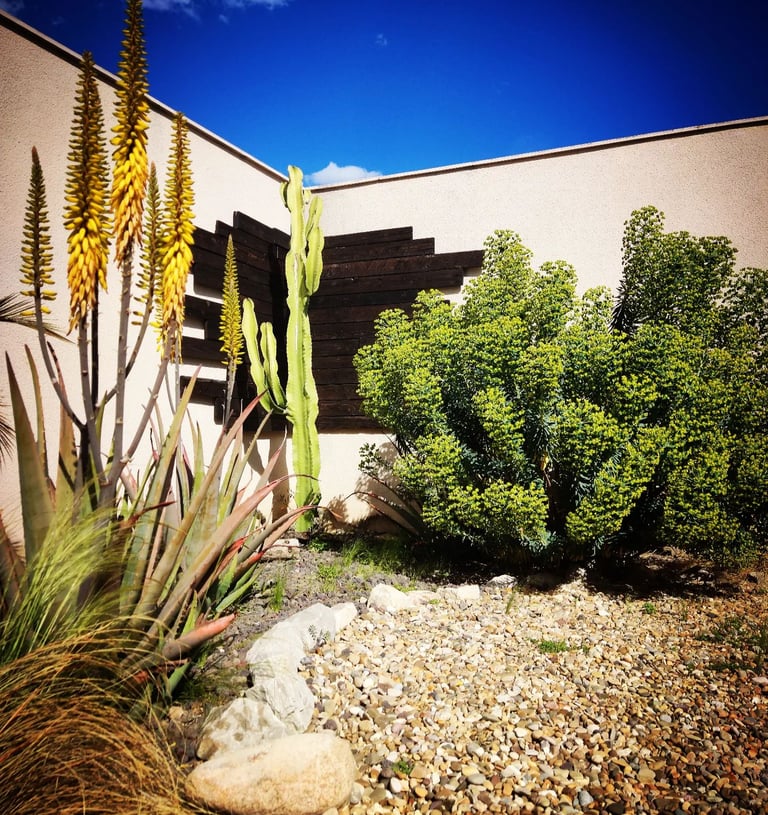 A partir de las indicaciones e inquietudes de los clientes, propuse un jardín del estilo de los que podemos encontrar en la zona de California y Nuevo México. Hay que recordar que esas zonas comparten con la nuestra las características propias del clima mediterráneo.
